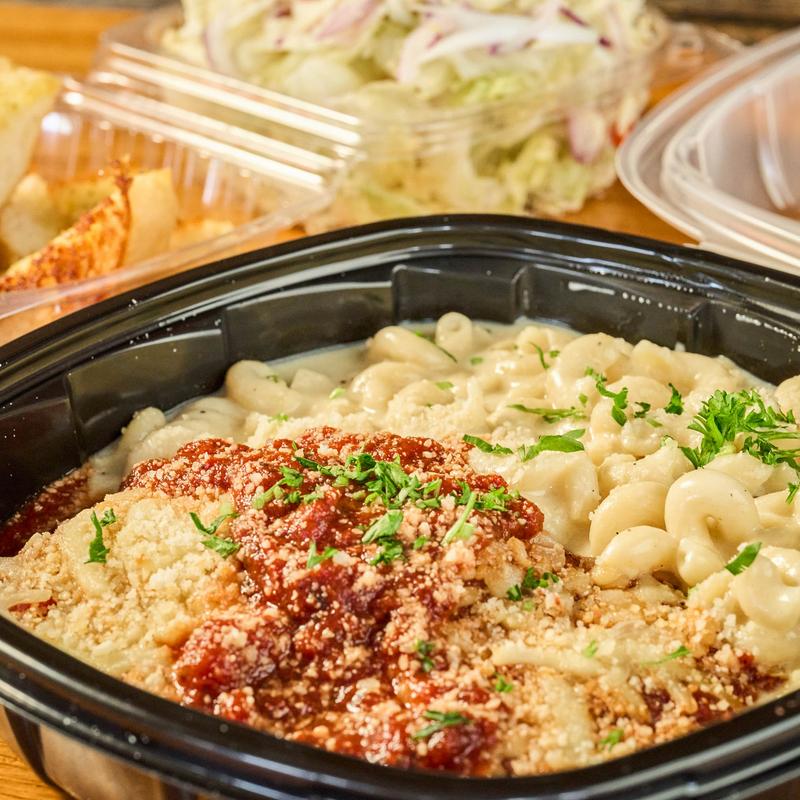Breaded chicken finished with meat sauce, provolone, and baked to perfection.